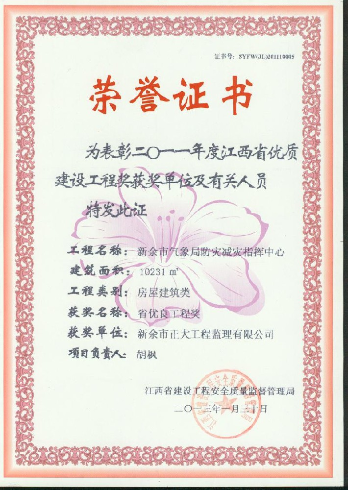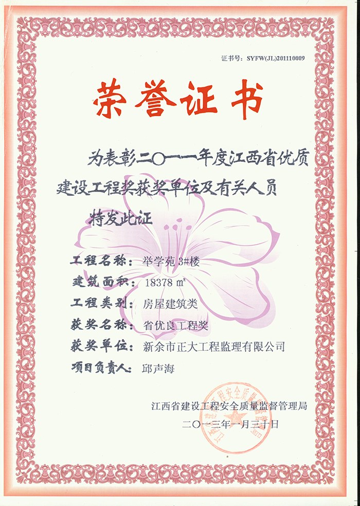 新余市正大工程監理有限公司依托新余市建筑設計院,于1995年11月成立,是新余市開展監理工作最早的監理單位,本公司具有建設部核發的房屋建筑工程甲級監理資質、市政公用工程乙級監理資質、國家人防辦核發的人防工程監理乙級資質。我公司始終堅持“客戶至上、質量第一、信守合同”的經營理念;追求“為社會創造價值、為業主創造效益、為自身謀求發展”的經營宗旨;遵循“守法、誠信、公正、科學、優質、高效”的工作原則,以雄厚的技術力量、完善的管理制度、豐富的監理經驗、良好的企業信譽迅速成為我市監理行業的一支新銳力量!